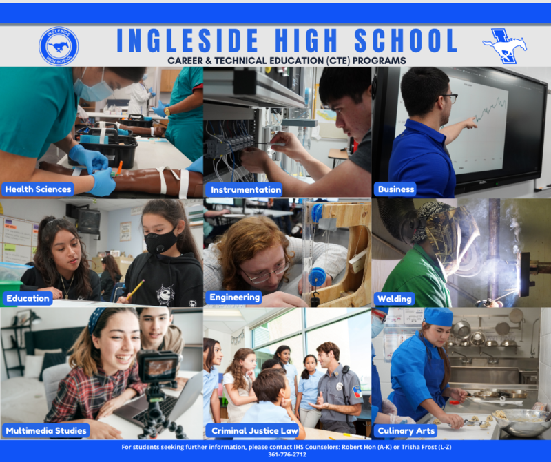 Did you know that Ingleside High School has 9 Career and Technical Education (CTE) programs that are offered to students? IHS has developed programs that meet the needs of local industries surrounding the area. Students have the opportunity to enroll CTE programs that are designed to prepare them for the workforce with an industry certification. What industry program are you most interested in?