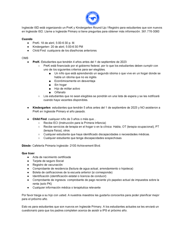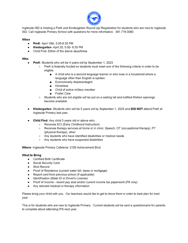 Information for IISD's Pre-K and Kindergarten Round Up: